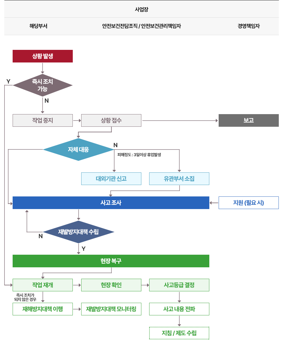 | 재발방지대책 수립 | 해당부서 안전보건 전담조직 |